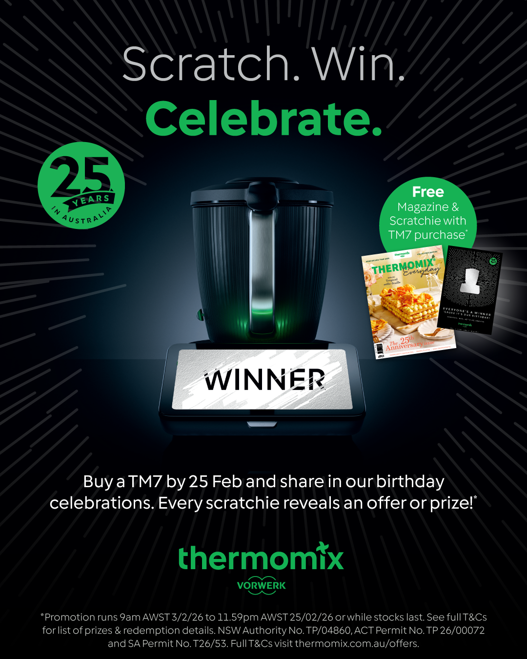 For a limited time receive our free copy of our newest issue of the Thermomix Everyday magazine plus a scratch ticket! Every ticket wins a prize!