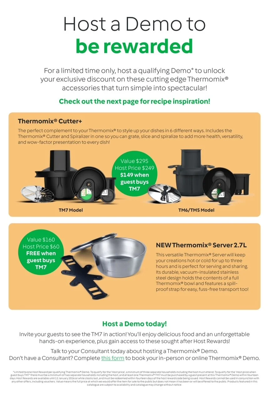 Join me for a relaxed and inspiring Thermomix® TM7 cooking demo, where we’ll explore all the amazing things your Thermomix® can do.